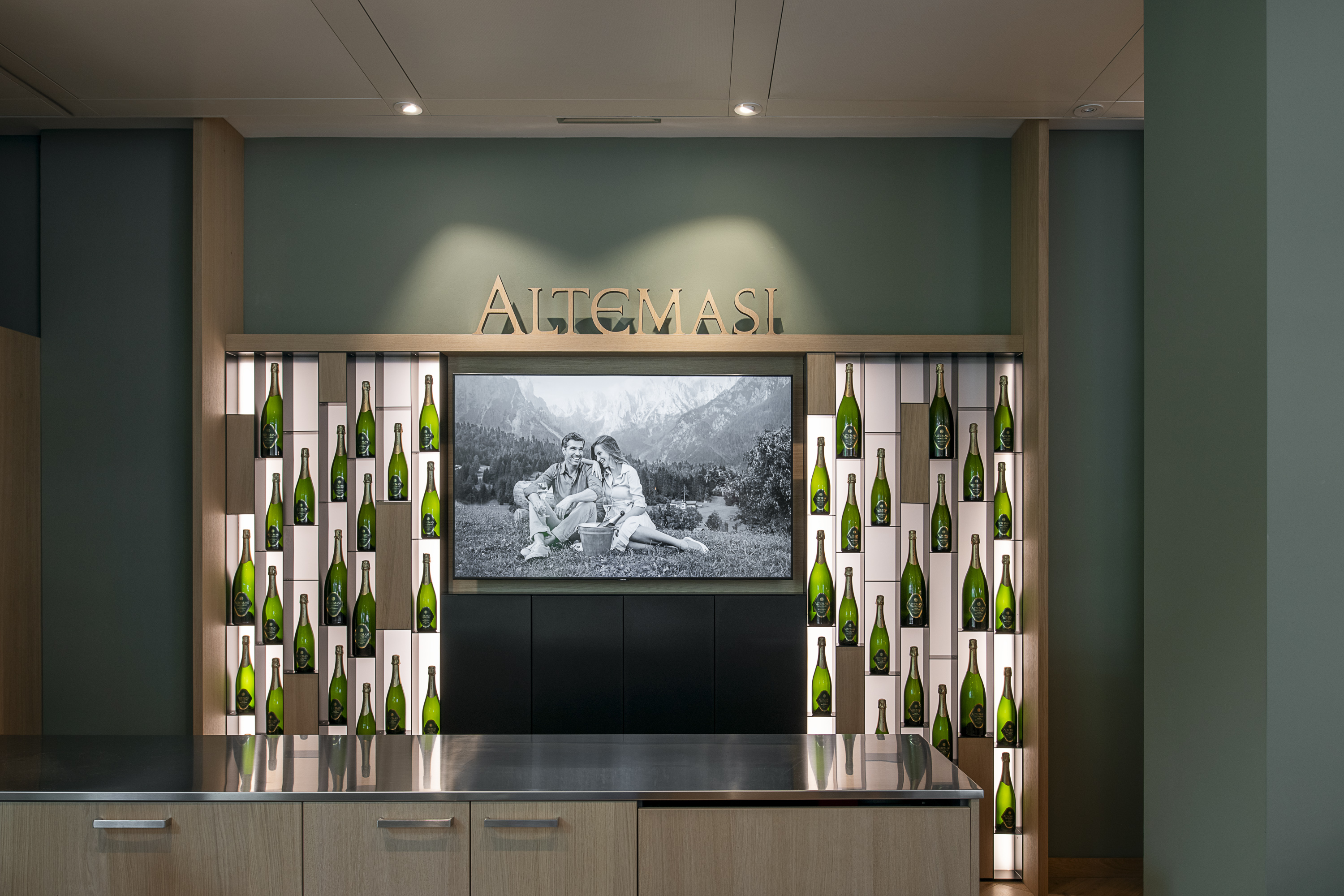 L’obiettivo era tradurre l’identità del brand Cavit in un luogo esperienziale, capace di unire accoglienza e rappresentanza.