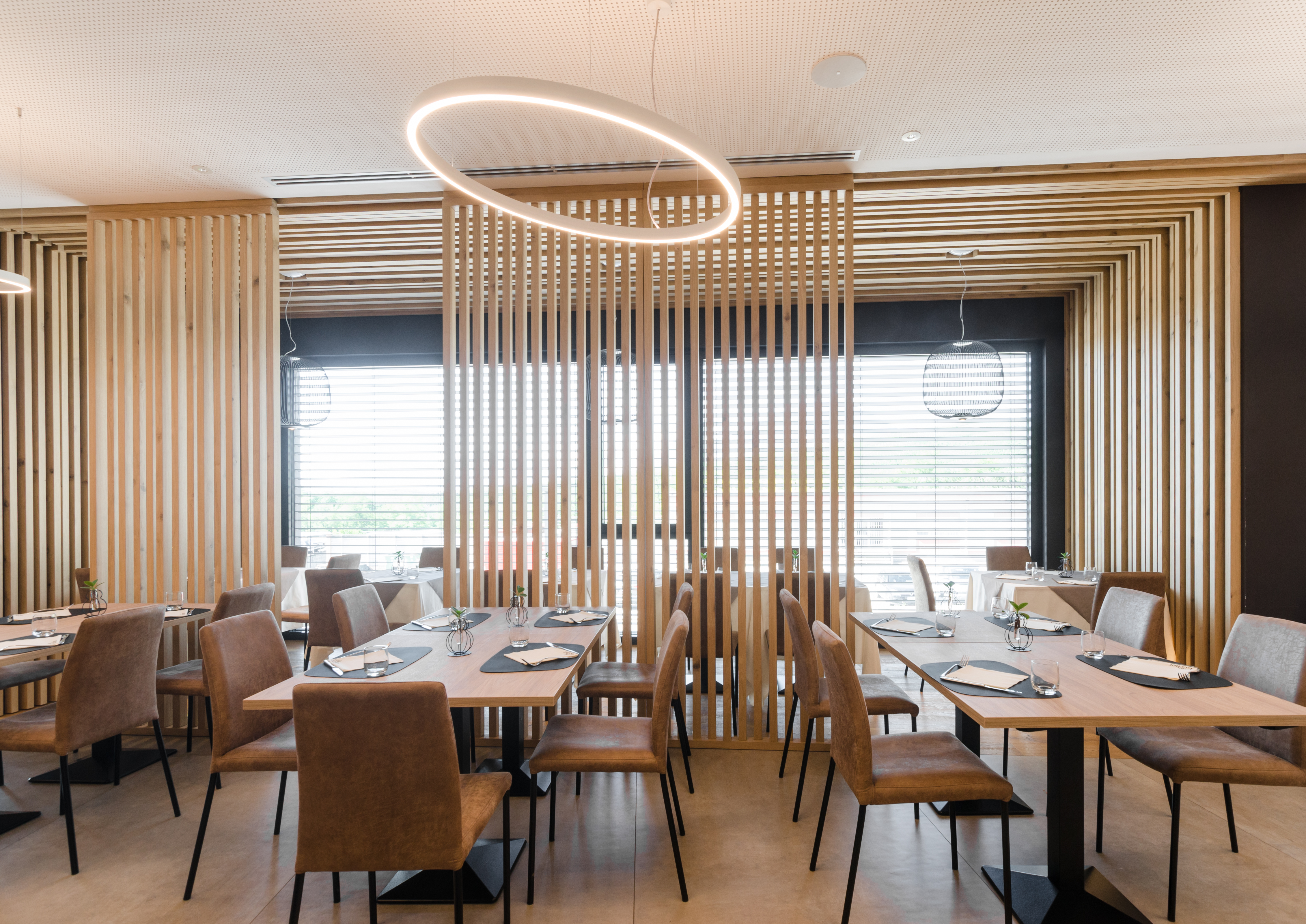 Abbiamo voluto che l'interior design della sala ristorante fosse un'estensione della cucina, dove ogni elemento dell'ambiente racconta una storia di tradizione e innovazione. Il legno e i toni neutri non sono solo una scelta estetica, ma rappresentano l’anima del territorio che ci circonda, proprio come i piatti serviti ai clienti. In questo modo, ogni visita diventa un’esperienza sensoriale completa, dove il cibo e l’ambiente si fondono per offrire qualcosa di autentico e unico, proprio come la Val di Non.