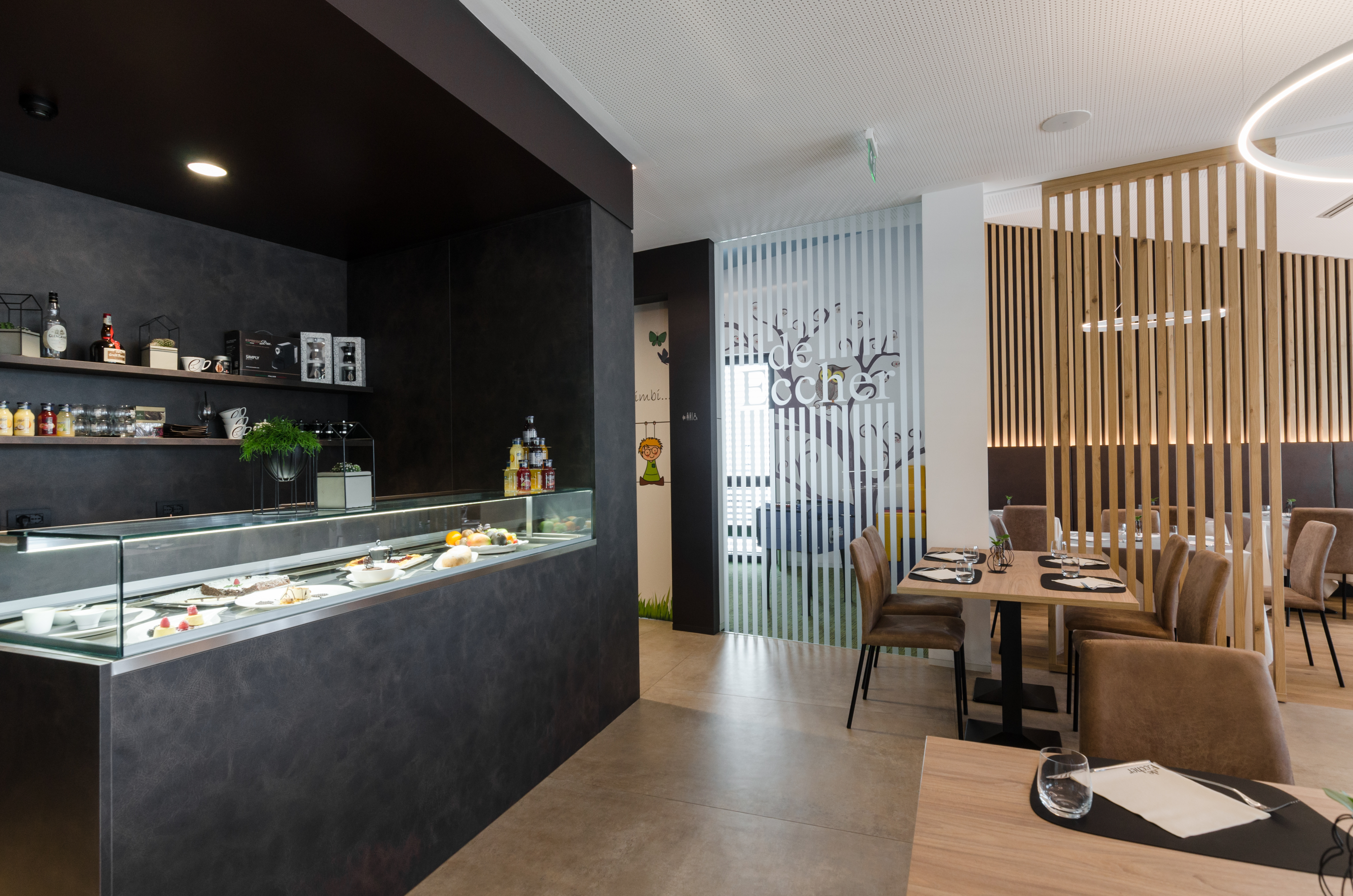 Abbiamo avuto il privilegio di lavorare alla realizzazione di un progetto che ci ha permesso di fondere tradizione e innovazione in un ambiente unico. La realizzazione degli interni per il ristorante De Eccher, nel cuore della Val di Non, gestito da una famiglia di tre fratelli, seguiti dall'architetto Peroceschi Ivan. L’obiettivo era creare uno spazio che, pur essendo moderno e luminoso, mantenesse un forte legame con il territorio, utilizzando legno di rovere e toni di bianco. Le forme pulite e semplici sono state pensate per invitare i clienti a godersi non solo il cibo, ma anche l’atmosfera che ci circonda.