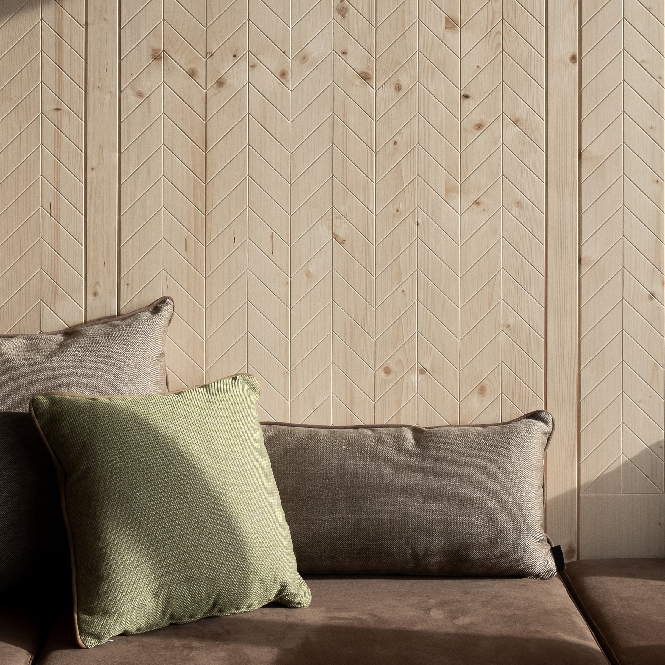 Superata la soglia, si percepisce subito una sensazione familiare e sorprendente: quella di perdersi nella quiete di un bosco autunnale. Lo spazio accoglie e sorprende, stimolando i sensi dal tatto alla vista, come in una passeggiata lenta tra le sfumature della natura.